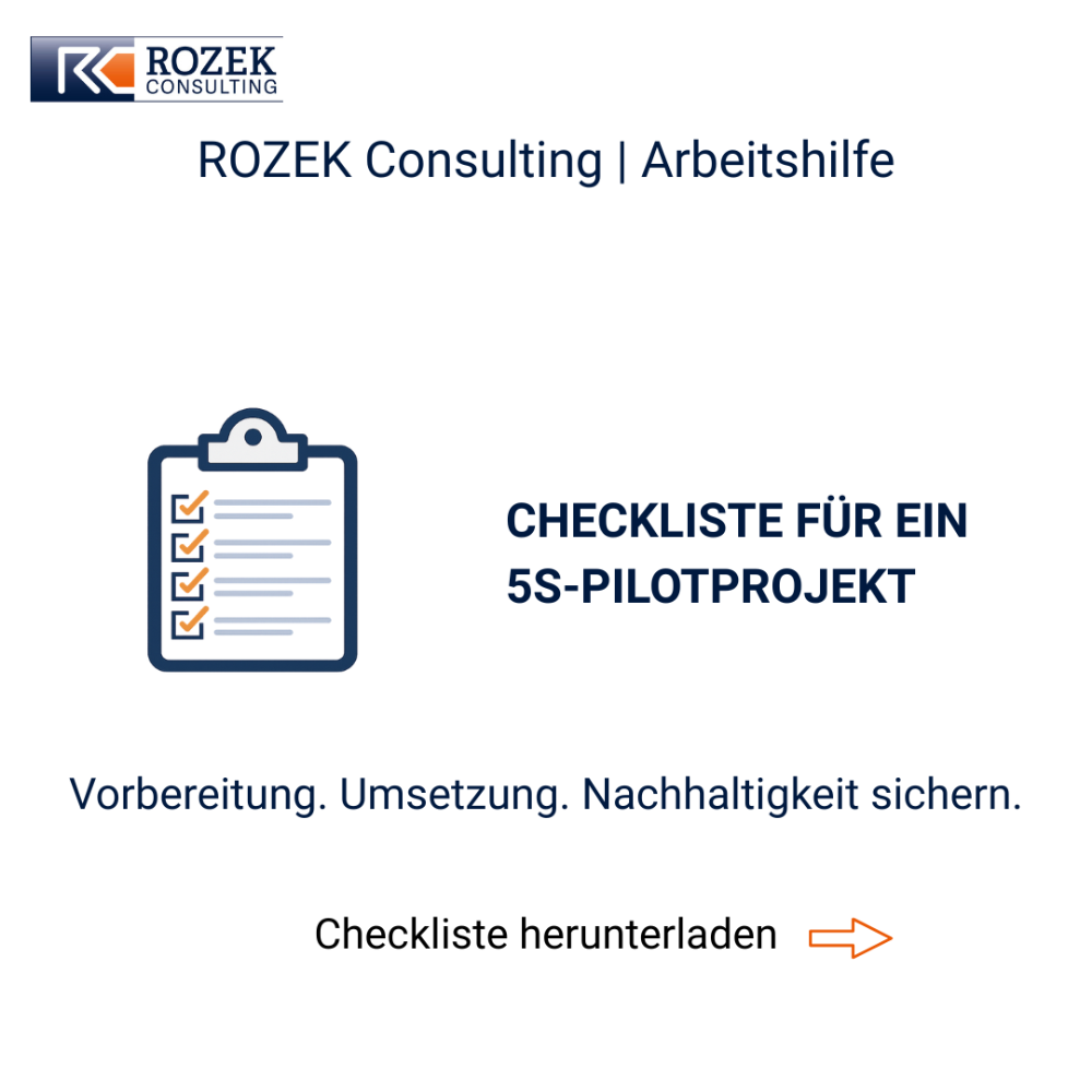 Mit dieser Checkliste erhalten Sie ein praxiserprobtes Werkzeug, mit dem Sie einen Pilotbereich strukturiert analysieren, Ordnung schaffen und erste Verbesserungen direkt mit Ihrem Team umsetzen können.